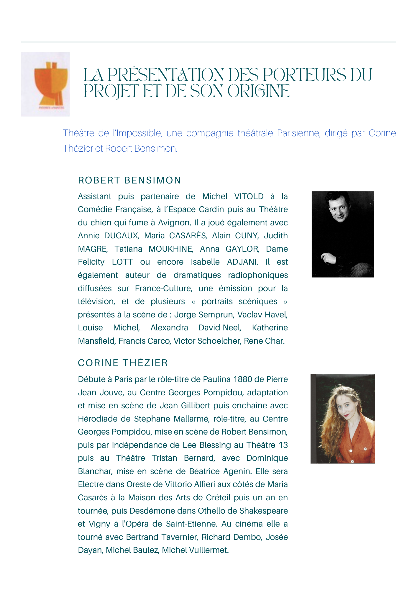 Écrite sur mesure pour trois comédiens français ayant chacun vécu une partie de son existence au Cambodge, et pour des danseuses khmères vivant en France, cette pièce entend prolonger pour le public d’aujourd’hui l’effort d’universalisme que l’humaniste