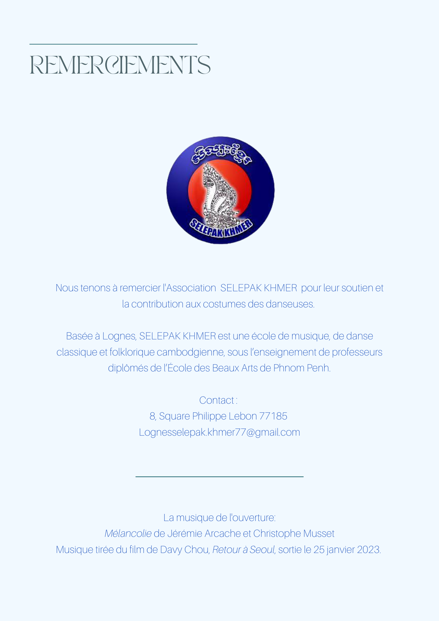 Le spectacle nous permet, à travers les aventures et les découvertes d’Adhémard, de découvrir à notre tour le monde khmer jusqu’au moment où de vraies danseuses du ballet khmer installées en France envahissent la scène et nous initient à cette tradition artistique et religieuse intacte depuis le VIII ème siècle.